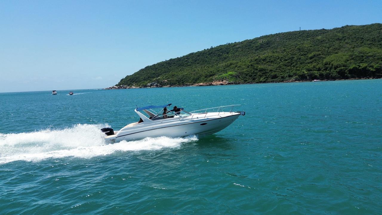 • A lancha tem churrasqueira, som, toldo, boias macarrão e 1 tapete flutuante sem custo adicional.